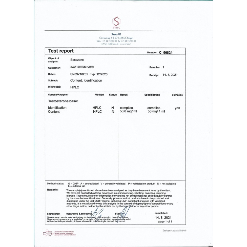 Specifiche Basezone Testosterone AlphaZone Pharmaceuticals